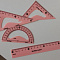 В состав набора входят: линейка 15 см, треугольник 30°/60°, треугольник 45°/45°, транспортир 180°.